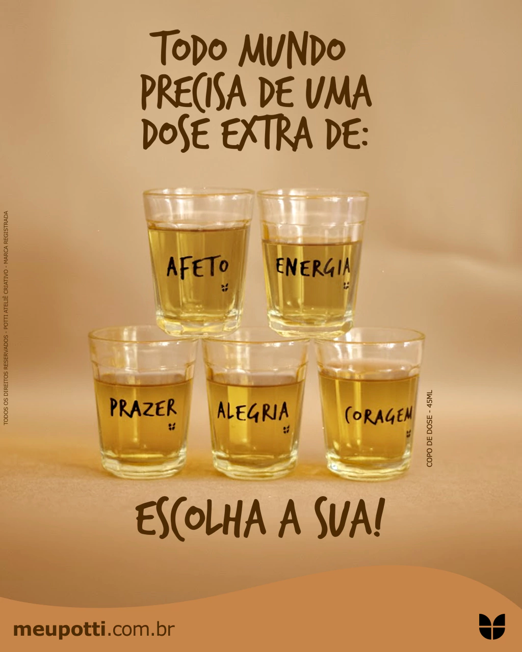 Kit com 5 copos de dose (Afeto,Alegria,Energia,Prazer,Alegria) é, sem dúvida, a melhor opção para degustar sua cachaça em grande estilo. Além de muito elegante, ele torna o momento ainda mais especial. Seja tomando uma dose com os amigos, em família ou mesmo só para relaxar. Esse é o copo que não pode faltar! Escolha o seu!